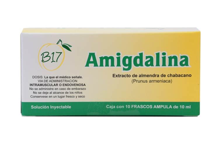 Упаковка витамина B17 (инъекционный) содержит 10 ампул, в каждой из которой 10 мл, содержащих по 3 грамма чистого Амигдалина B17.