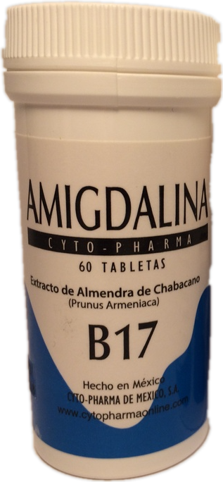 В одной упаковку амигдалина B17 - 60 таблеток, в каждой таблетке находится 500 мг амигдалина. Амигдалин природный и естественный продукт, изготавливаемый из горьких семян абрикоса. Применяется при лечении и профилактики рака.